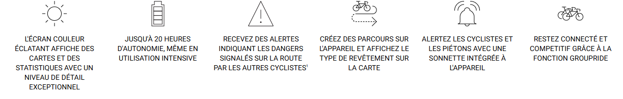 Que vous rouliez en groupe ou en solo, sur la route ou les chemins, le compteur Edge 1050 est l’outil idéal pour vous accompagner sur vos performances, vos défis et vos entraînements personnalisés.