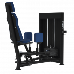 Machine de musculation à charge guidée permettant le travail des membres inférieurs en position assise.